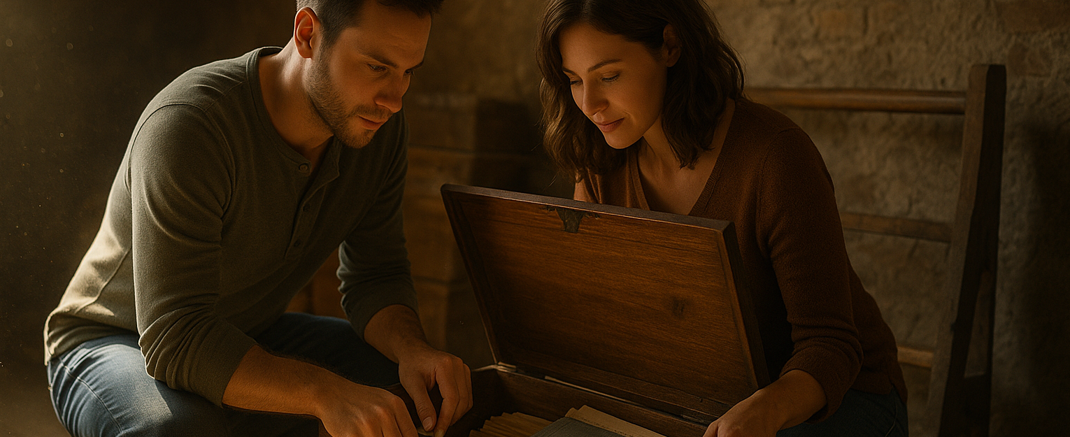 They climbed the tower at sunset, each step echoing like a heartbeat. On the second landing they found it, a slate that shifted under gentle pressure. Beneath lay a tin box wrapped in faded ribbon. The bells began to hum, and the moment felt stitched to time. What happened next will shock you.